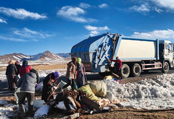 与此同时,拉萨纳木错景区保护开发有限公司对景区运维实行统一管理。“生态优先、绿色发展是我们的宗旨。”公司物业中心副主管多吉笑着说,“每天早上8点半,工作人员在服务站集合,点完名就分工去核心景区的人行道和湖边清理垃圾。”冬季三天一运,夏季则每日清理,垃圾统一送往当雄县处理厂——这是如今纳木错环卫工作的日常节奏。