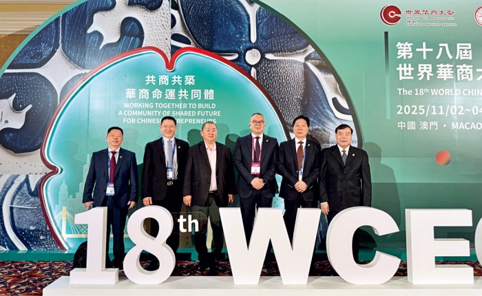 2025年11月,施乾平(右三)出席第十八届世界华商大会