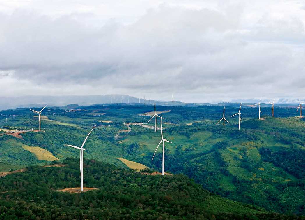 2025年11月17日,老挝南部,中国绿色能源企业在老挝孟松的风电项目