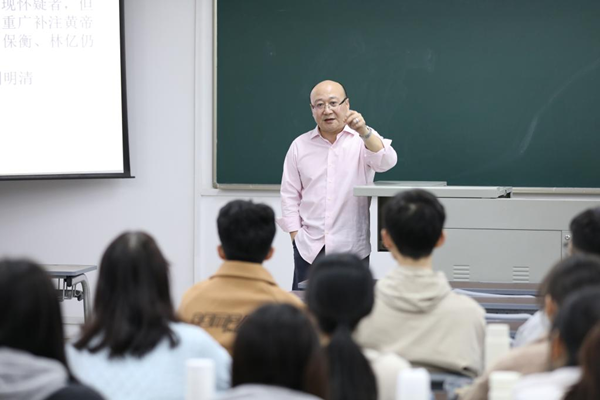 台胞高嘉骏在课堂上讲授中医。新华社记者陈旺摄