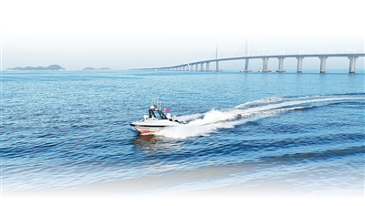 港珠澳大桥珠海公路口岸附近水域,智能无人艇在值守巡逻。资料图片