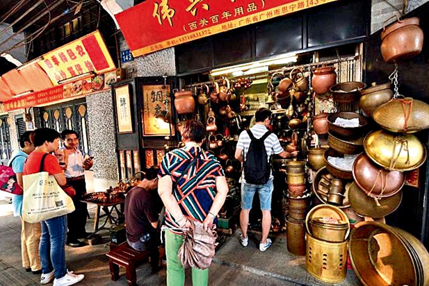“天程铜艺”成为恩宁路上一道特别的风景线,引得不少游客驻足观望