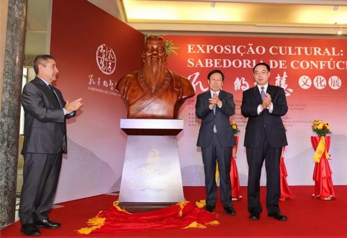 活动现场,中葡两国重要嘉宾共同为文化展开幕式剪彩,并举办孔子像赠送揭幕仪式。