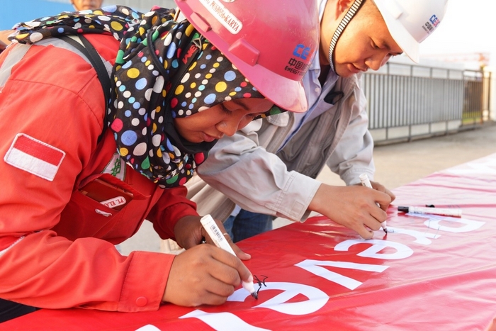 中印员工共同在安全建设条幅上签字