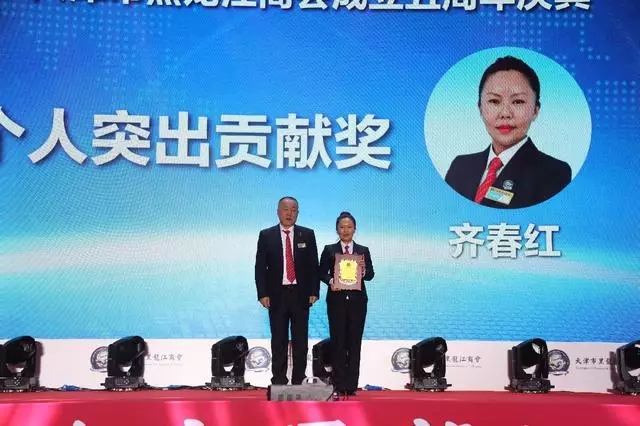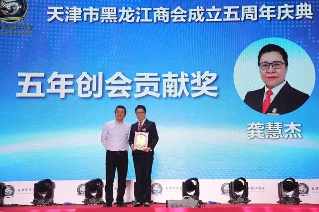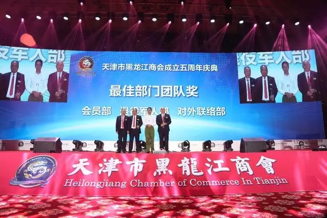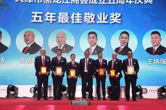在全场热烈的掌声中,黑龙江省工商联专职副主席、党组成员沙育超为马景良颁发终身成就奖。黑龙江省商务厅一级巡视员赵文华为徐景海颁发五年突出贡献奖,天津市工商联副主席娄杰为龚慧杰颁发五年创会贡献奖,荣誉会长马景良为为关成伟、王甲涛、潘忠源、刘兴和、朱傑、王炳强颁发五年最佳敬业奖。