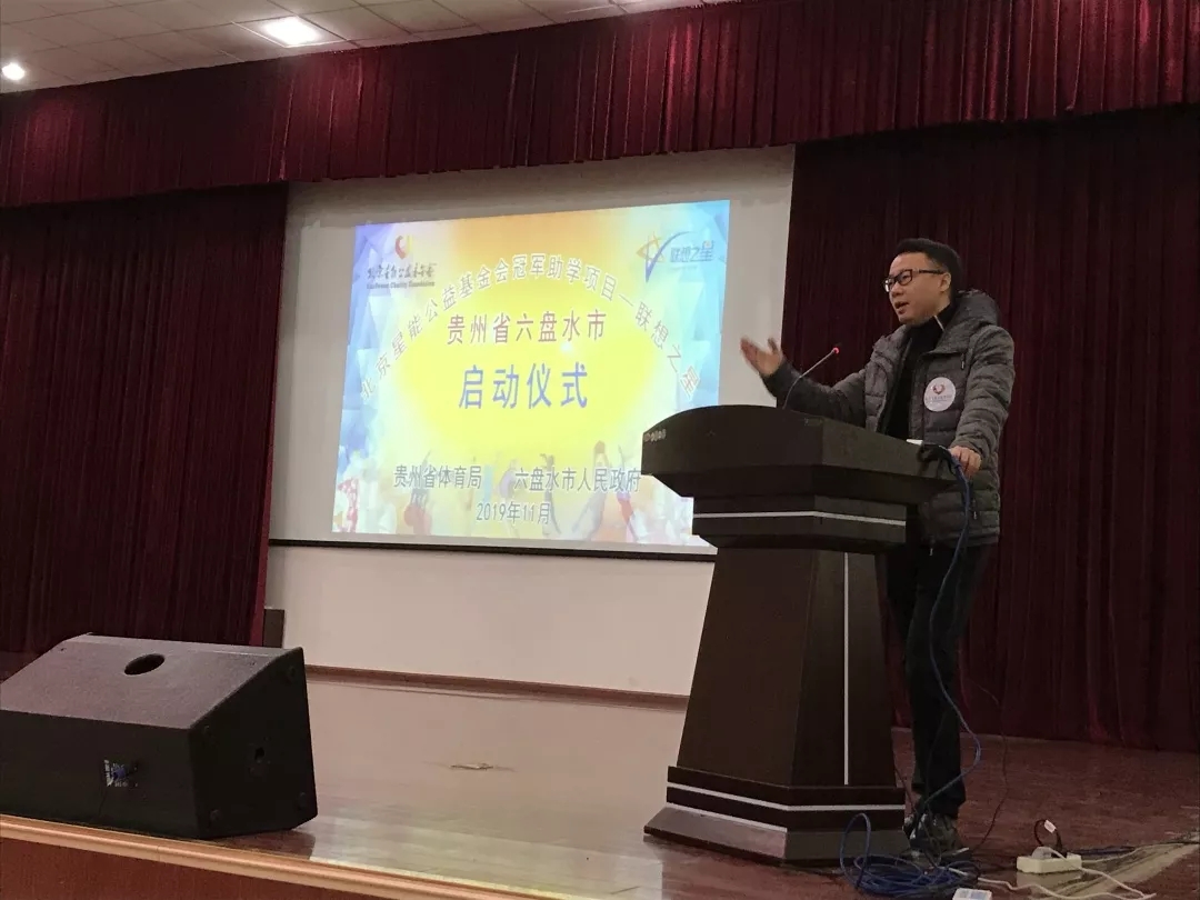 2019年8月,在联想之星与北京星能公益基金会的联合发起下,联想之星创业CEO特训班的同学(星友),受到联想之星公益初心的感召,为贵州六盘水体校的孩子们慷慨解囊,捐助善款20余万元。11月30日,联想之星特训班星友代表携善款与物资抵达贵州六盘水,与跳水奥运冠军高敏、女排奥运冠军宋妮娜、拳击奥运冠军张小平、田径世界冠军高红苗、世界足球小姐提名人选韩端等多位运动名将一起,将公益善心送给六盘水体校的小运动员们。