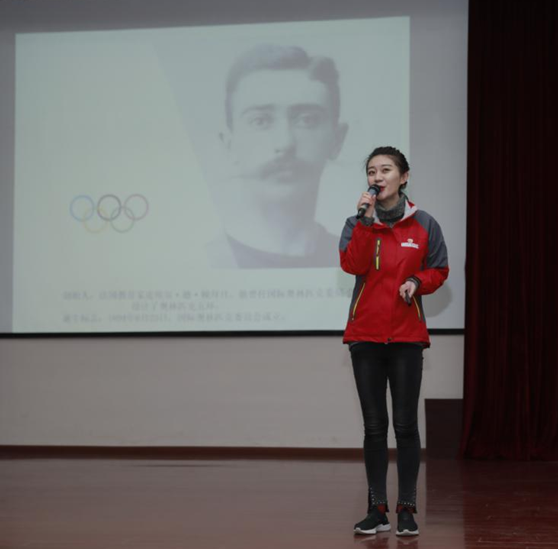 奥运宣讲员姜琳将奥运精神和奥运数千年历史普及给孩子们,让“做自己的冠军”理念和体育颂精神深刻准确传达给孩子。