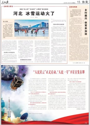 2019年12月27日上午,“星耀空天,云飞中国”人民星云项目启动仪式暨“人民一号”卫星发射新闻发布会在人民日报社新媒体大厦举行。人民数据管理有限公司联合中科光启空间信息技术有限公司在会上共同启动了人民星云项目,这一项目将为各行业提供高时效、低成本、更便捷基础空天信息,不断提升空天信息在经济社会发展、大众生活、国际服务等方面的服务保障能力。