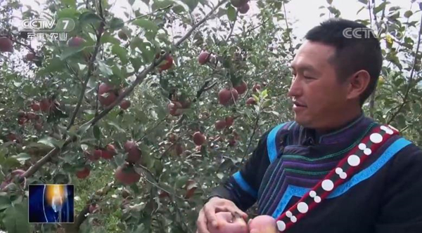凉山州盐源县香房村村民日火长明家靠种植苹果走上了致富路。