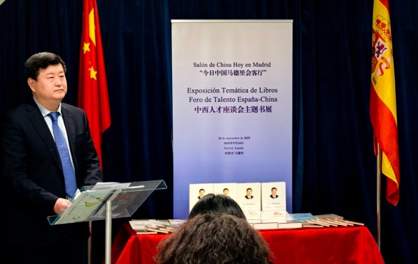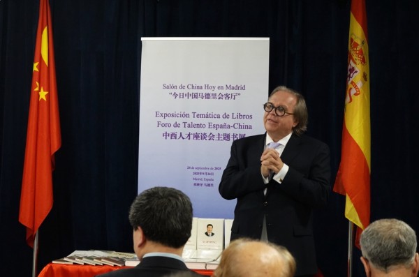 9月24日,“今日中国马德里会客厅”中西人才座谈会在西班牙马德里举行。中国外文局西欧与非洲传播中心(今日中国杂志社)主任赵丽君,北京市委组织部副部长、市人才工作局局长张若冰,西班牙中国友好协会主席安东尼奥•米格尔•卡尔莫纳(Antonio Miguel Carmona),欧洲议会议员哈维尔•纳特(Javier Nart),马德里大学理事会秘书长阿尔瓦罗·科斯塔斯(Álvaro Costas)等来自中国、西班牙的40余位政府、媒体、智库、学者代表参加本次座谈会。