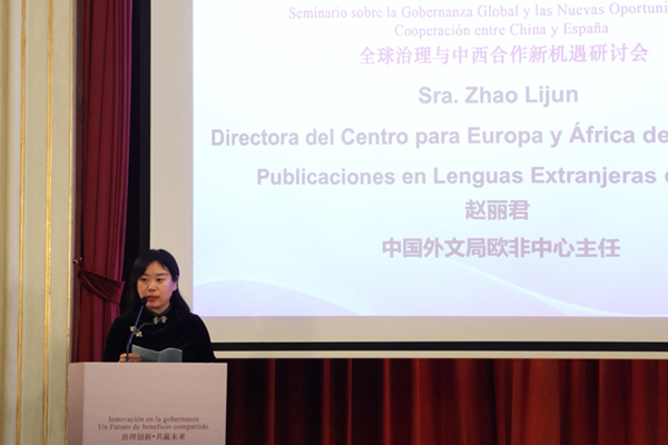 中国外文局西欧与非洲传播中心(今日中国杂志社)主任赵丽君做主旨发言