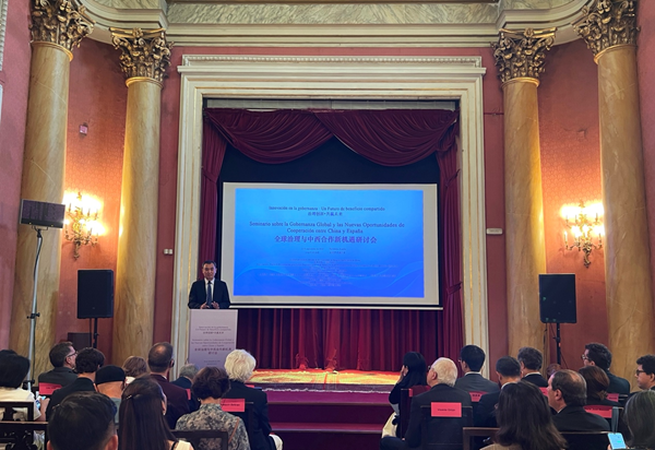 胡爱民指出,在中国与西班牙全面战略伙伴关系20周年之际,中国和西班牙的合作热度不断升温,两国友好交流故事不断续写新篇章。这一研讨会汇聚中西外交官、学者、媒体、智库等领域代表围绕全球治理与中西合作前景进行高水平对话,是促进中西两国人文交流、加强文明互鉴的真实写照!他表示,全球治理倡议与全球发展倡议、全球安全倡议和全球文明倡议相得益彰:让团结代替分裂、合作代替对抗、包容代替排他,有效消弭和平赤字、发展赤字、安全赤字、治理赤字,为建设持久和平、普遍安全、共同繁荣、开放包容、清洁美丽的世界注入强大正能量。
