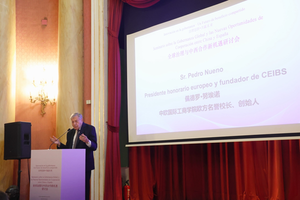 中欧国际工商学院名誉校长(欧方)佩德罗•雷诺做主旨发言