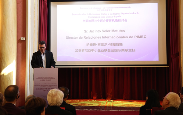 加泰罗尼亚中小企业联合会(PIMEC)国际关系主任哈辛托·索莱尔·马图特斯做主旨发言
