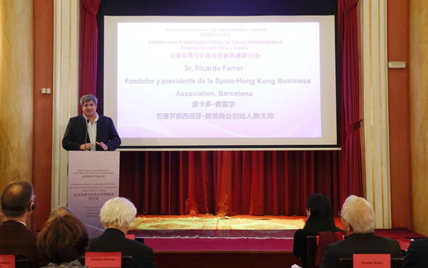 西班牙-香港商会创始人兼主席里卡多·费雷尔做主旨发言