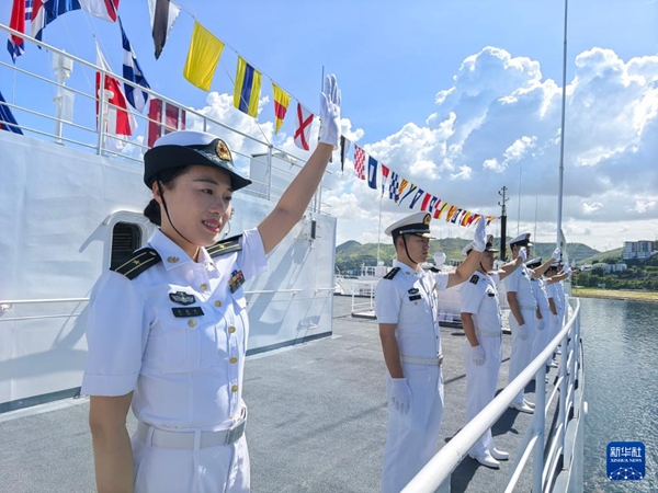 4月8日,执行“和谐使命-2025”任务的中国海军“丝路方舟”号医院船抵达巴布亚新几内亚莫尔兹比港,医院船官兵分区列队。新华社发(崔晓洋摄)