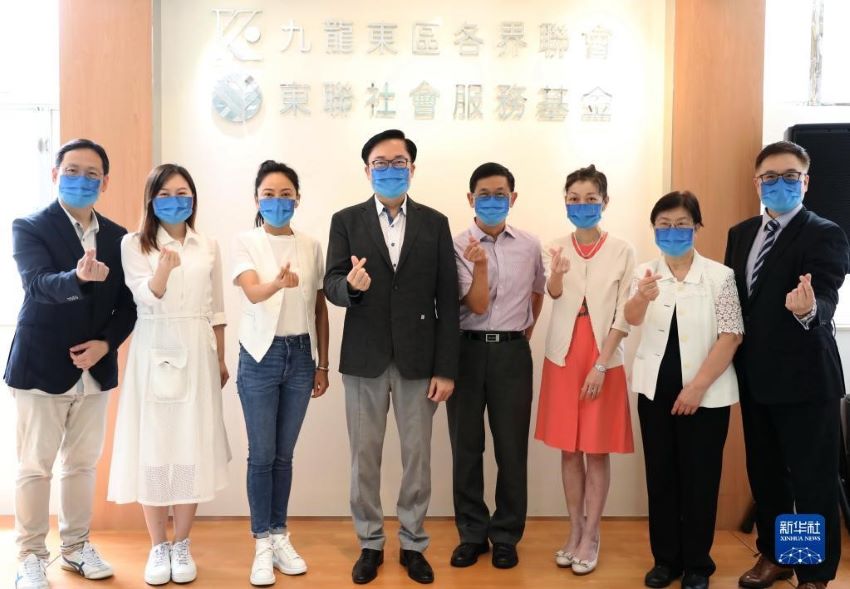 “抗逆心聆热线”团队部分成员合影:(自左至右)热线发起人之一、观塘区区议会主席柯创盛,热线义工、香港大学心理学系学生林绮荻,热线发起人之一、东联社会服务基金永远荣誉主席梁慧慧,热线发起人之一、东联社会服务基金会长李志峰,热线义工、临床心理学家徐佩宏,热线发起人之一、精神科专科医生林美玲,热线义工、香港护士总工会会长苏肖娟,热线发起人之一、香港情绪健康学会会长黄广兴(4月29日摄)。 新华社记者 吴晓初 摄