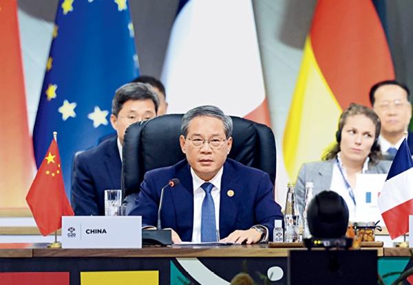 2025年11月22-23日,中国国务院总理李强在约翰内斯堡出席二十国集团领导人第二十次峰会第二及第三阶段会议。这是当地时间11月23日,李强在第三阶段会议上发言