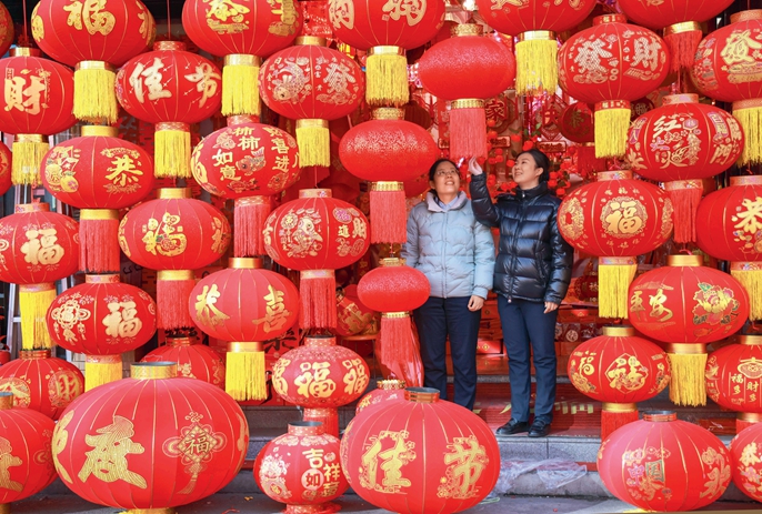 2025年12月29日,山东临沂,顾客挑选红灯笼
