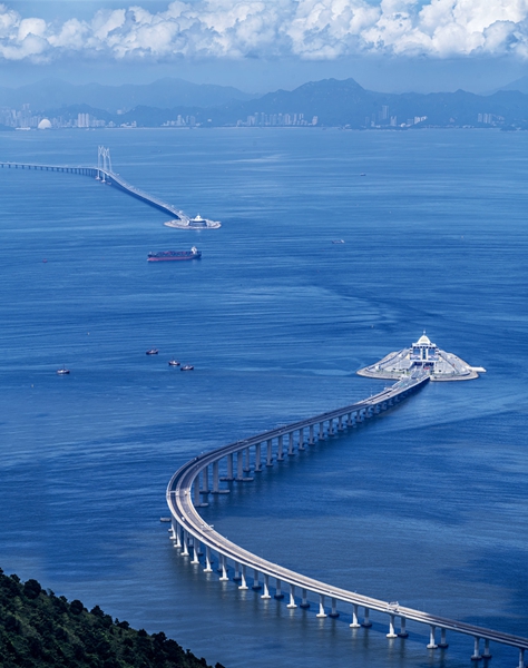 1.2025年9月4日,香港,从大屿山顶眺望港珠澳大桥
