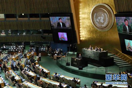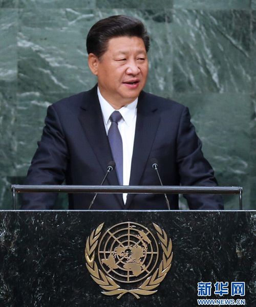 9月26日,国家主席习近平在纽约联合国总部出席联合国发展峰会并发表题为《谋共同永续发展 做合作共赢伙伴》的重要讲话。新华社记者马占成摄